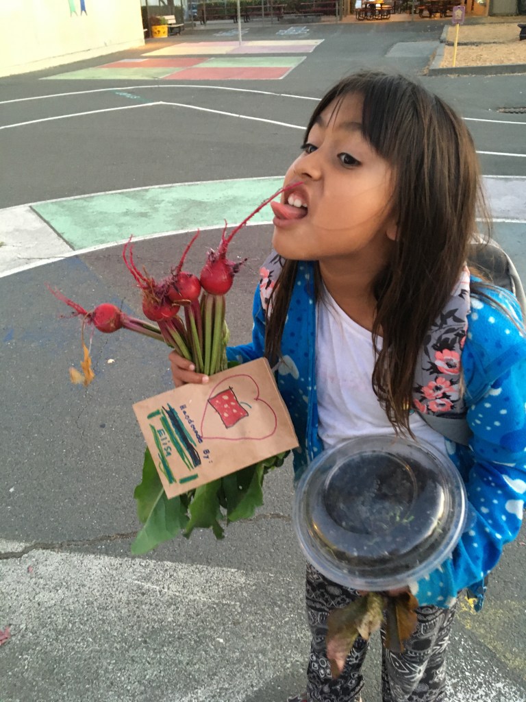 Last week Wednesday, I spent the afternoon with the staff of the school where Dirt Girls originated. As soon as I walked through the entrance, I made eye contact with three former Dirt Girls participants: E., L., & P., who were helping with the after-school popcorn fundraiser (pictured above with two of their classmates who also joined my after school garden clubs).
