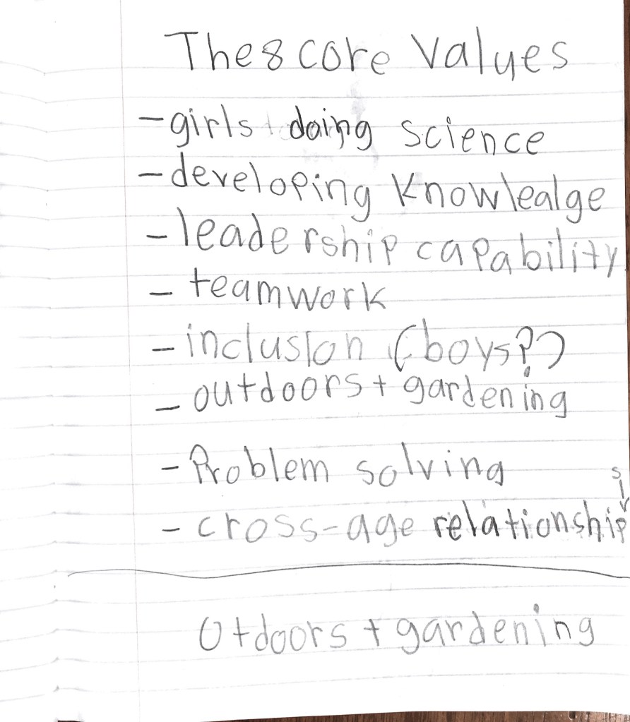 Prior to the event, we got the garden ready: we weeded the butterfly bed and did a few other chores. Accomplishing tasks like this fit right into the four-part Dirt Girls program structure: Opening Circle, Teamwork Challenge, Choice Chores, and Closing Reflection.