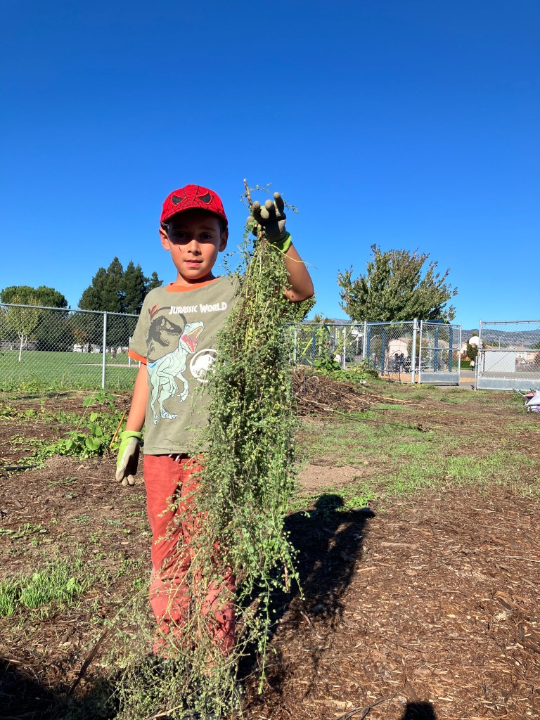 Last week during the after school club, Dirt Girls, a participant pulled out a weed that was longer than he is tall! Interacting with plants in this way not only develops a sense of accomplishment, it also lowers stress and reinforces lasting connections with the living world.