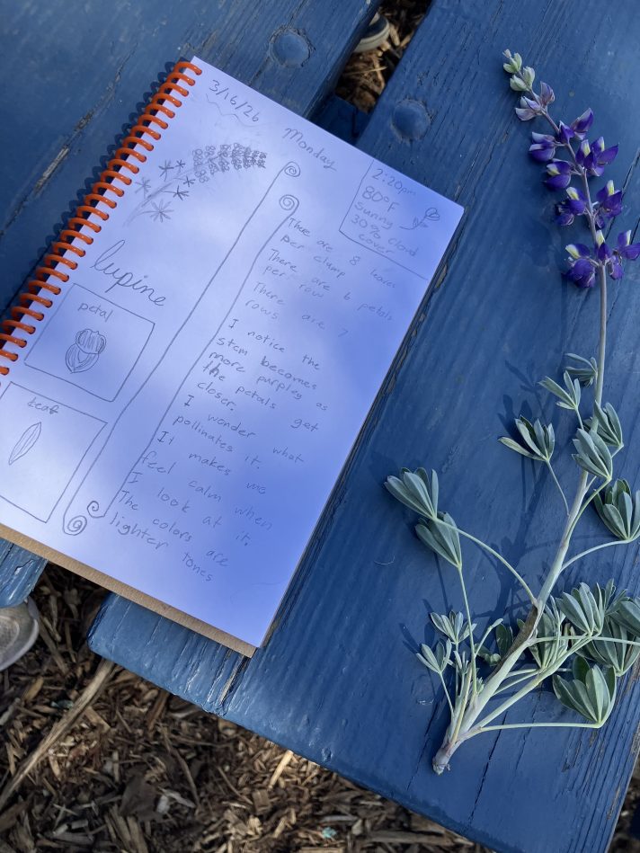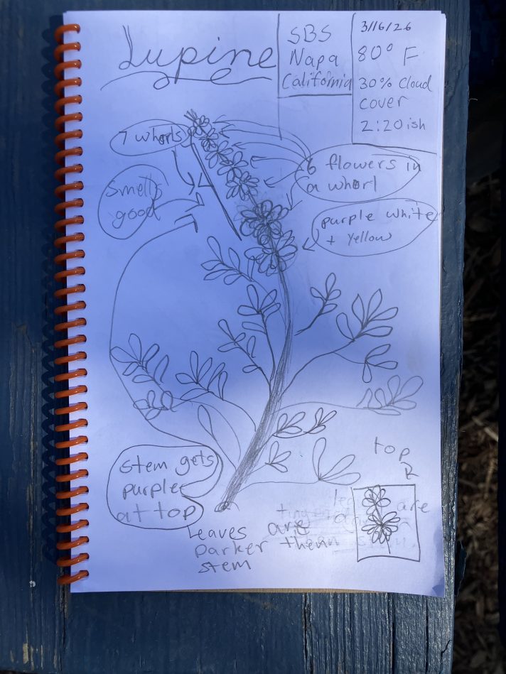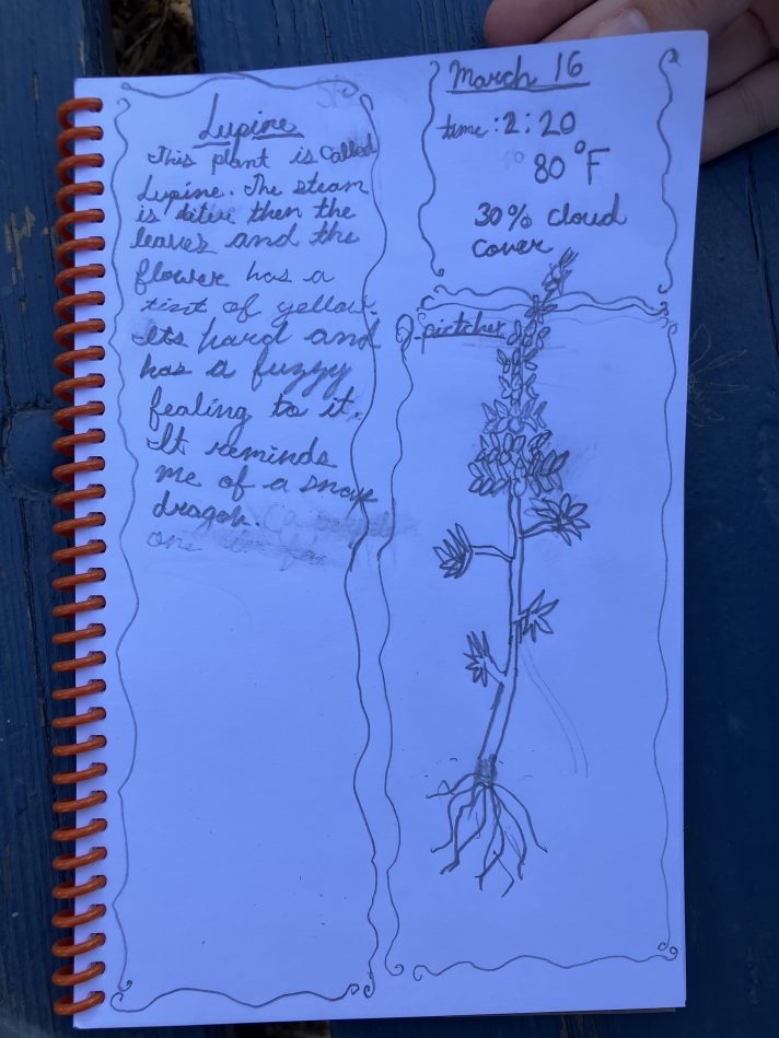 Students at Stone Bridge School closely observed and sketched Silver Lupine in their monarch habitat. April 8th will be the final session of Nature Journaling at Archer Taylor Preserve, where I have been teaching monthly.
